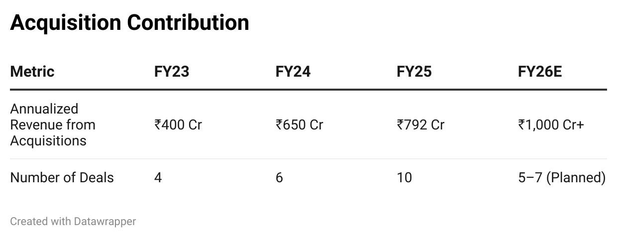 | Annualized Revenue from Acquisitions | ₹400 Cr | ₹650 Cr | ₹792 Cr | ₹1,000 Cr+ |