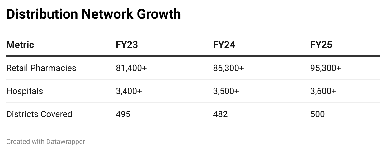In an industry where distribution efficiency dictates reach, Entero has established itself as a dominant national player. Operating across 20 states, 44 cities, and 500 districts, its client base includes over 95,300 retail pharmacies and 3,600 hospitals as of FY25.