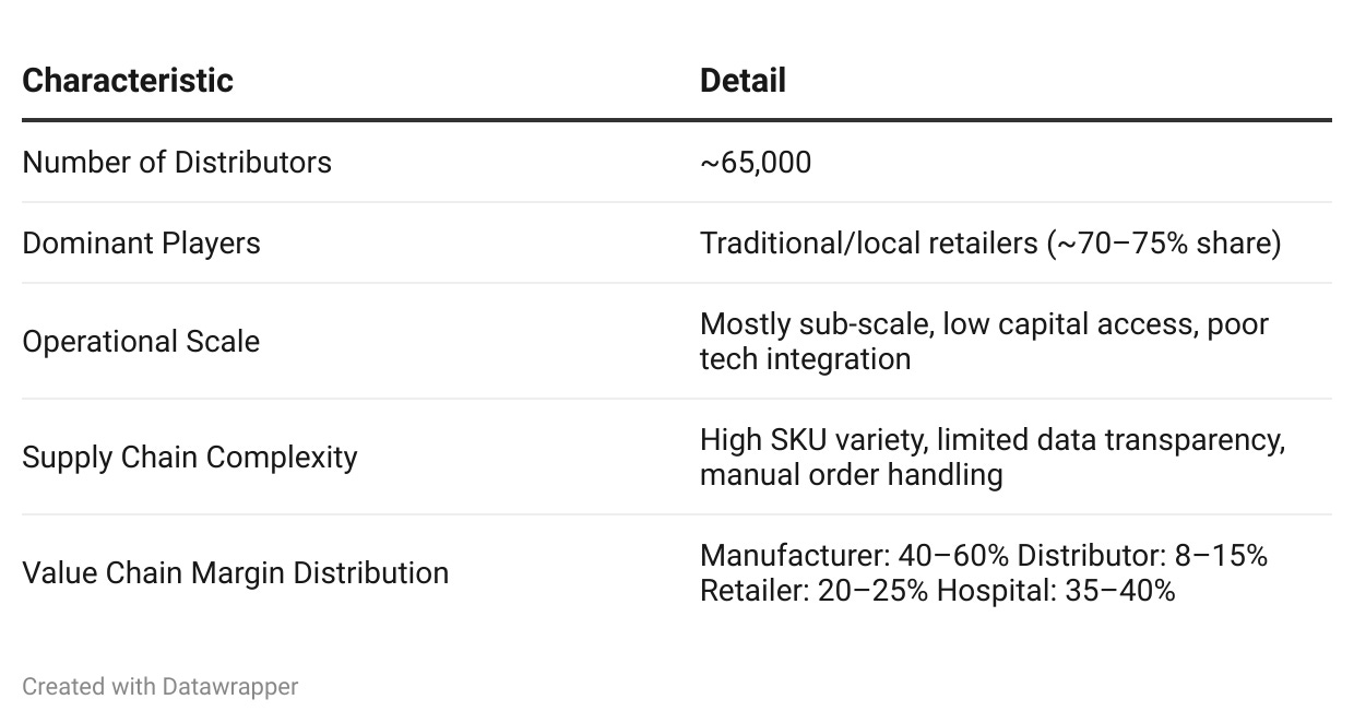 India’s healthcare distribution landscape has historically been dominated by small-scale, regionally focused distributors operating with low levels of technological adoption.